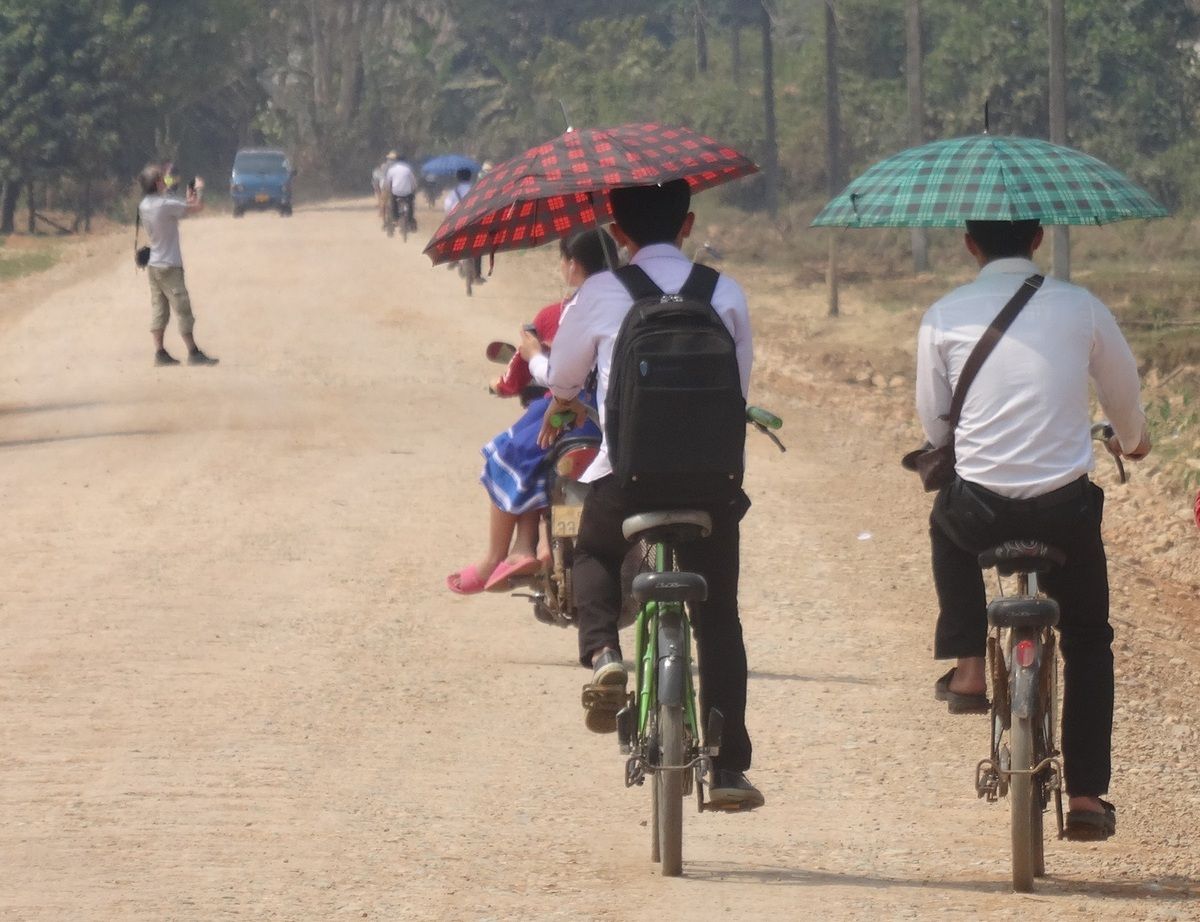 sortant de notre hôtel, nous traversons une piste d' atterrissage désaffectée, construite par les américains durant la guerre du Vietnam , avec la création d'une base aérienne. Un mariage va y avoir lieu: 100 tables et 8 chaises par table = 800 places assises