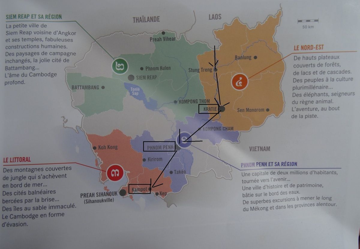 Venant de Phnom Penh nous sommes allés poser nos sacs à Kampot, à 150 km au sud.