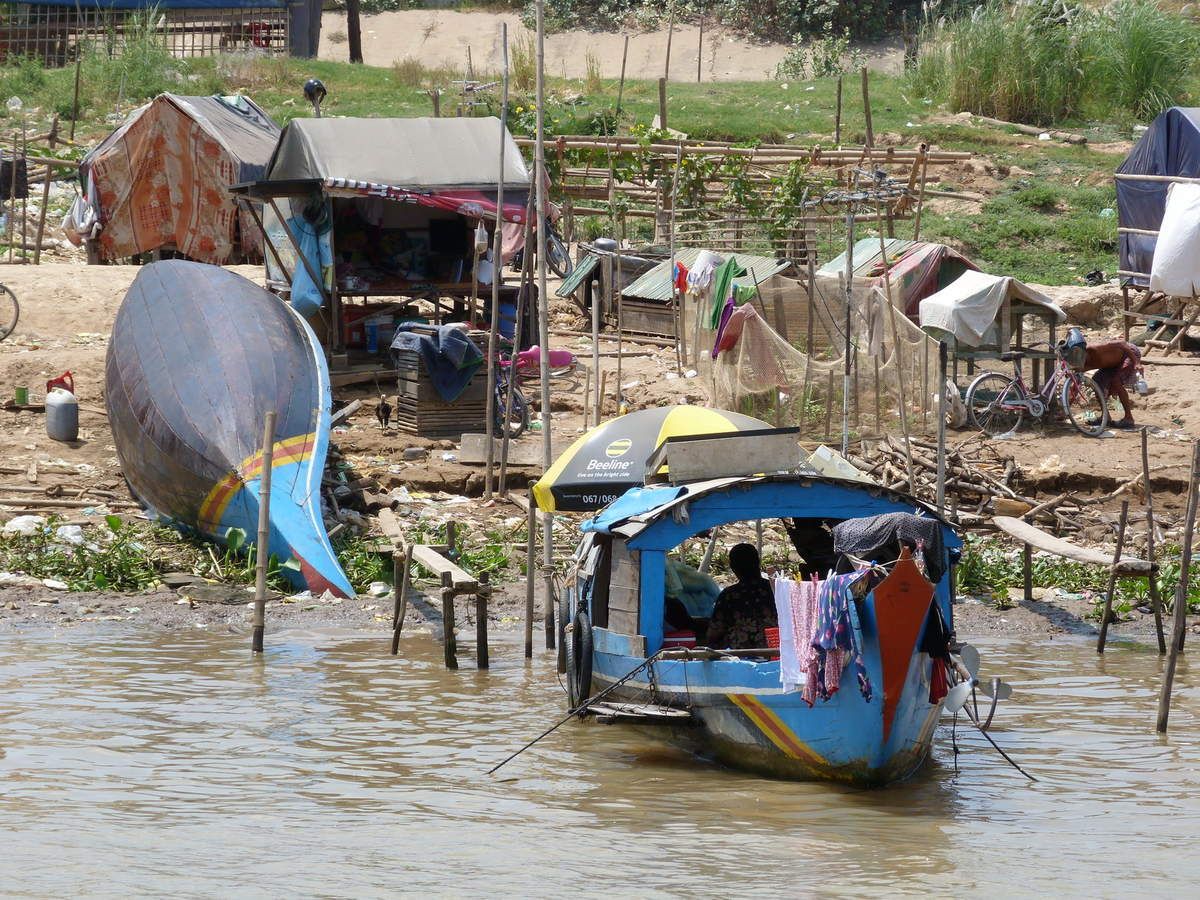 au conflent du Tonlé Sap et du Mékong, on voit très bien la différence de couleur des deux fleuves.
