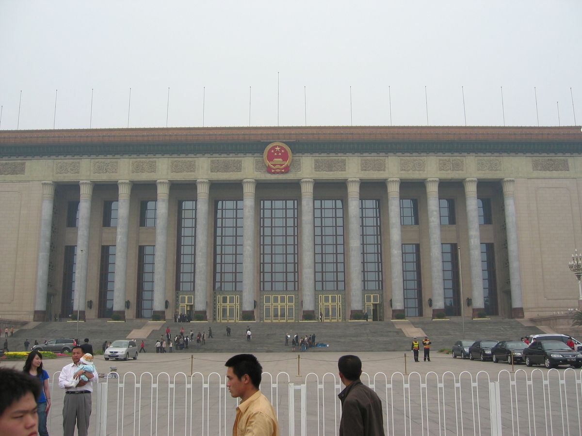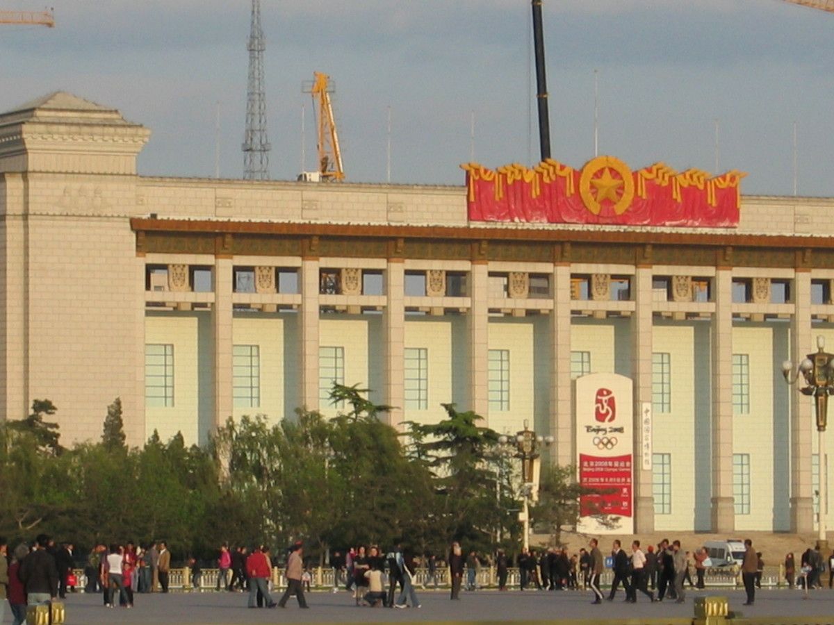 Sur le coté ouest on peut y voir le Palais de l' Assemblée du peuple, et encore une imposante architecture, avec en avant plan une sorte d' obélisque, un monument dédié aux héros.