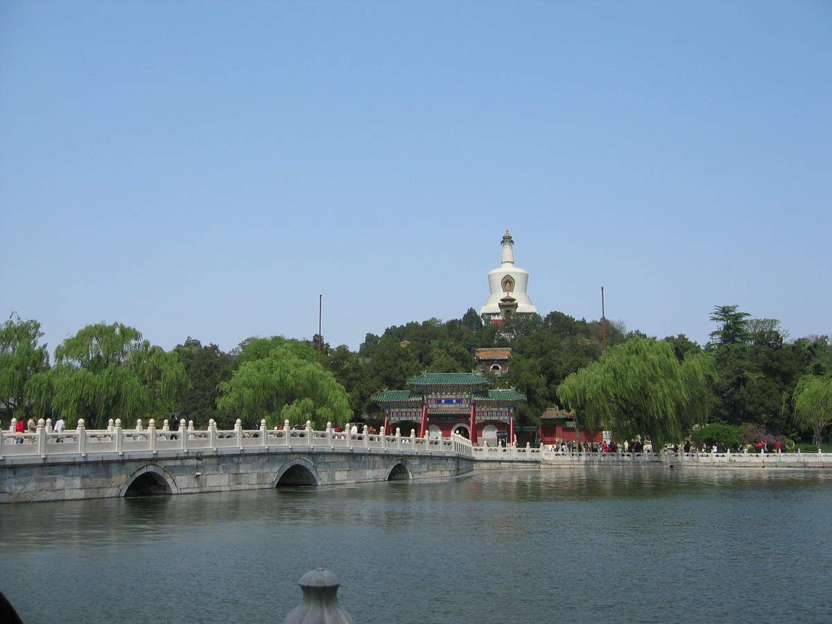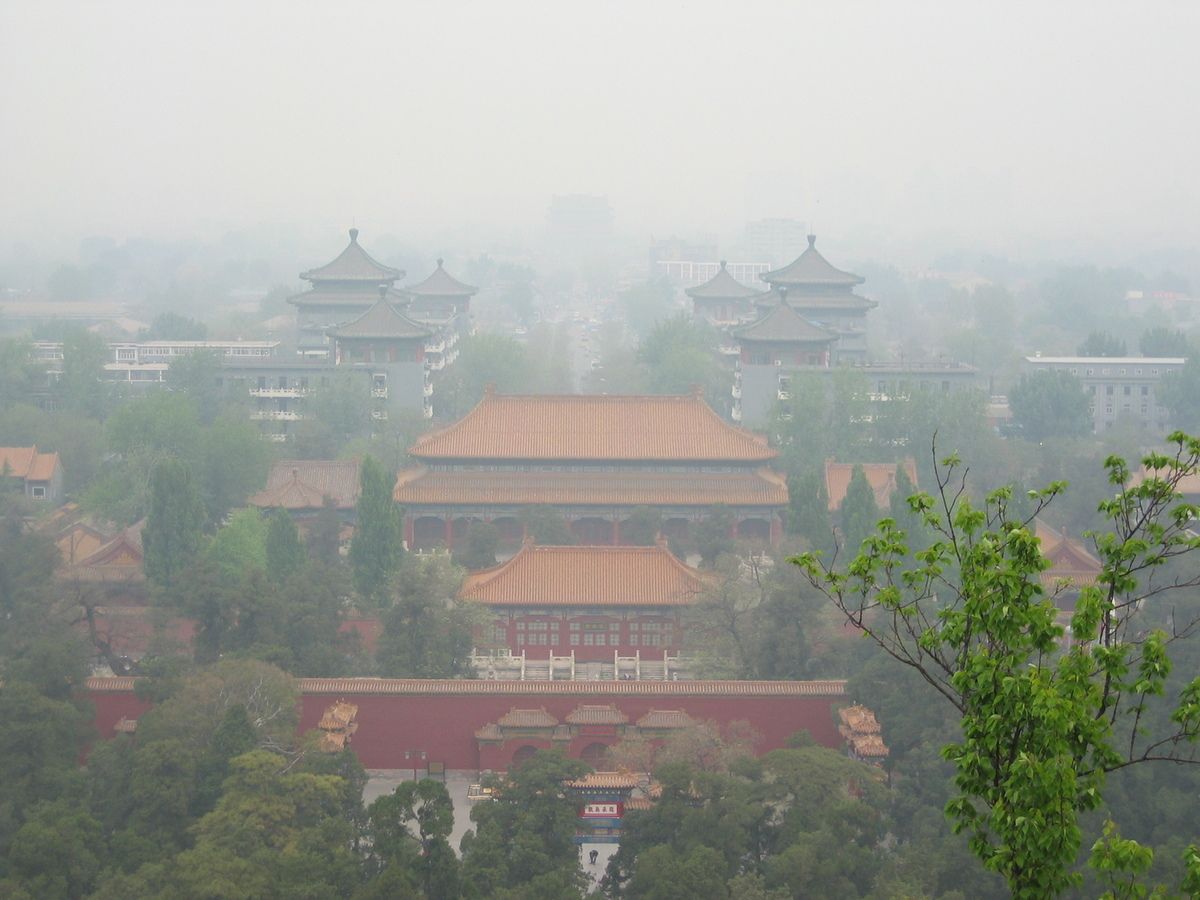 Ensuite à environ 2 km, dans le prolongement de la Cité Interdite, coté nord se trouve donc le Parc Jingshan et sa Colline de charbon . Colline artificielle qui culmine a 108 m., d' où on peut faire la photo avec la Cite Interdite en fonds. Malheureusement , à cause d'une brume légère, due probablement à la pollution les photos s'en trouvent altérées. Cette colline artificielle a été édifiée avec l'apport de la terre venant du creusement des douves et des lacs de la ville.