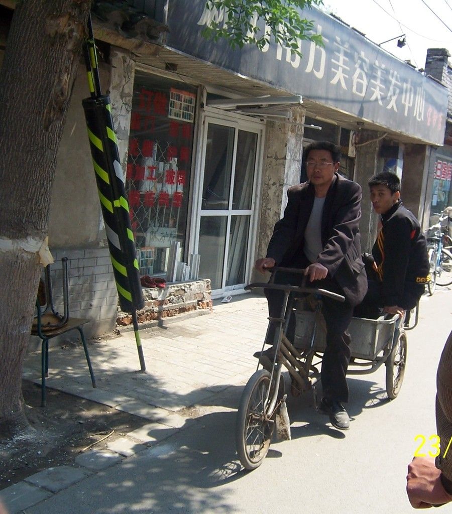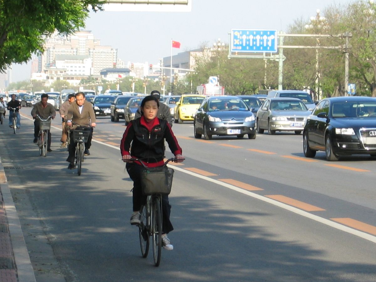 La circulation dans les quartiers ou nous sommes est assez fluide. Beaucoup d'automobiles, mais présence nombreuse de vélos assez souvent équipés de moteurs électriques. Nous n'avons pratiquement pas vu de motos ou mobylettes. Comparé à d'autres grandes villes que nous avons visitées en Asie (Phnom Penh, Saigon, Hanoi) Pékin me semble plus calme.